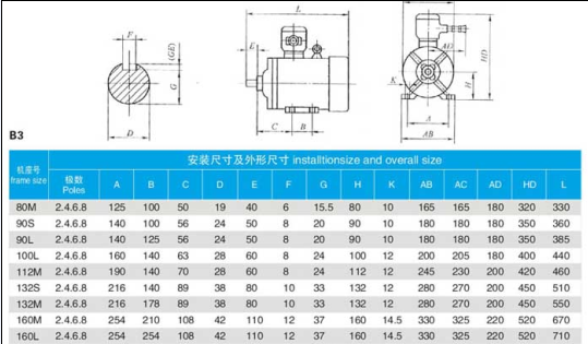 B3的安裝參數(shù)是有兩個端蓋式軸承,有底腳,有軸伸,借助底腳安裝在基礎(chǔ)的結(jié)構(gòu)構(gòu)件上。