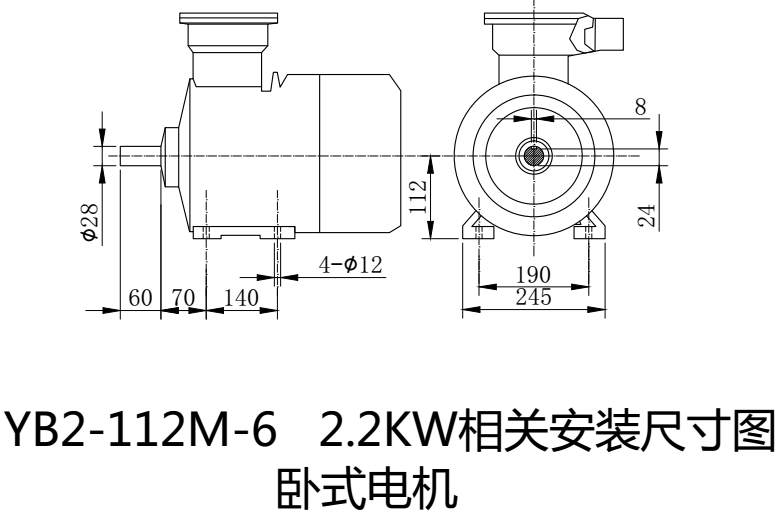 上星期和大家簡單講了一下YB2系列的100L-4-2.2KW隔爆型的防爆電機(jī)的相關(guān)安裝尺寸圖。今天和大家說一下YB2系列2.2KW的隔爆型防爆電機(jī)不是只有4極電機(jī)才有,同樣6極電機(jī)也有2.2KW的防爆電機(jī),今天就來和大家看一下YB2系列隔爆型防爆電機(jī)112M-6-2.2KW的安裝尺寸圖。