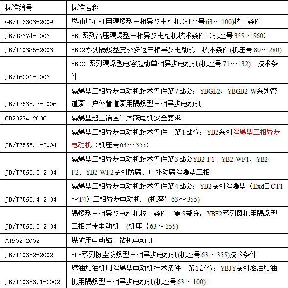 防爆電機(jī)的使用場(chǎng)所比較多,應(yīng)用比較普遍。防爆電機(jī)是防爆場(chǎng)所專(zhuān)用的電機(jī)是國(guó)標(biāo)下強(qiáng)制規(guī)定的,相應(yīng)的行業(yè)標(biāo)準(zhǔn)和執(zhí)行標(biāo)準(zhǔn)如果不達(dá)標(biāo)就是不合格產(chǎn)品,我公司所生產(chǎn)的防爆電機(jī)都是按照國(guó)標(biāo)行業(yè)標(biāo)準(zhǔn)的規(guī)范下生產(chǎn)出來(lái)的,現(xiàn)在所執(zhí)行的行業(yè)標(biāo)準(zhǔn)如下:
