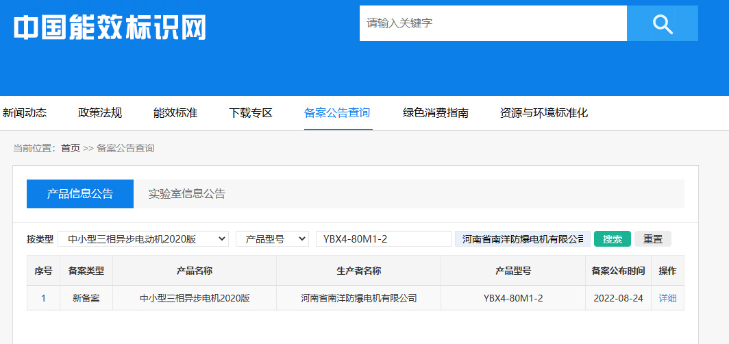 客戶收到電機(jī)后,可根據(jù)以下截圖去中國(guó)能效標(biāo)識(shí)網(wǎng)(https://www.energylabel.com.cn/)查詢電機(jī)能效或者根據(jù)電機(jī)上能效標(biāo)識(shí)二維碼掃描識(shí)別。備案號(hào):20220824-751200-04047244547654505 備案號(hào):20220824-751200-07684690956425155 備案號(hào):20220824-751200-07684690956425155