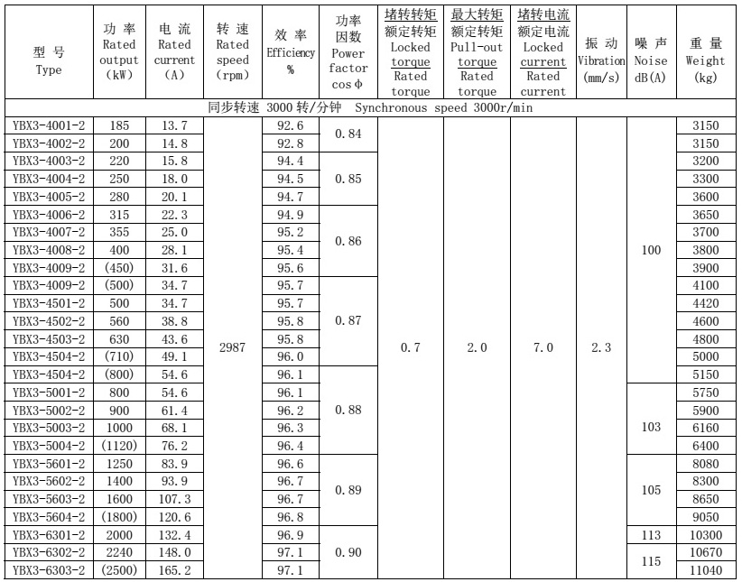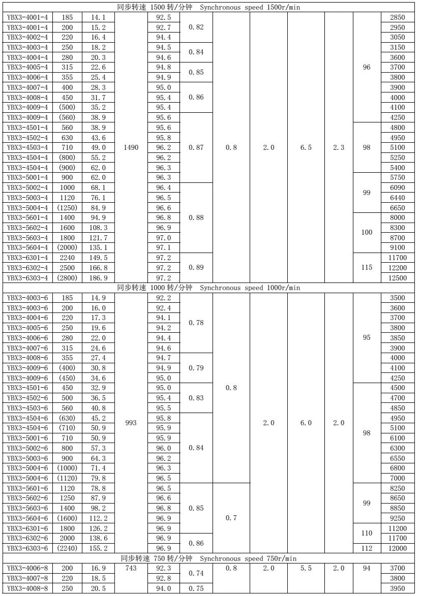 型譜中帶有括號的規(guī)格電機溫升按F級(105K)考核,其余規(guī)格可按B級(80K),如要求括號中功率規(guī)格的溫升按B級(80K)考核,型號應(yīng)當(dāng)向下順延一檔。