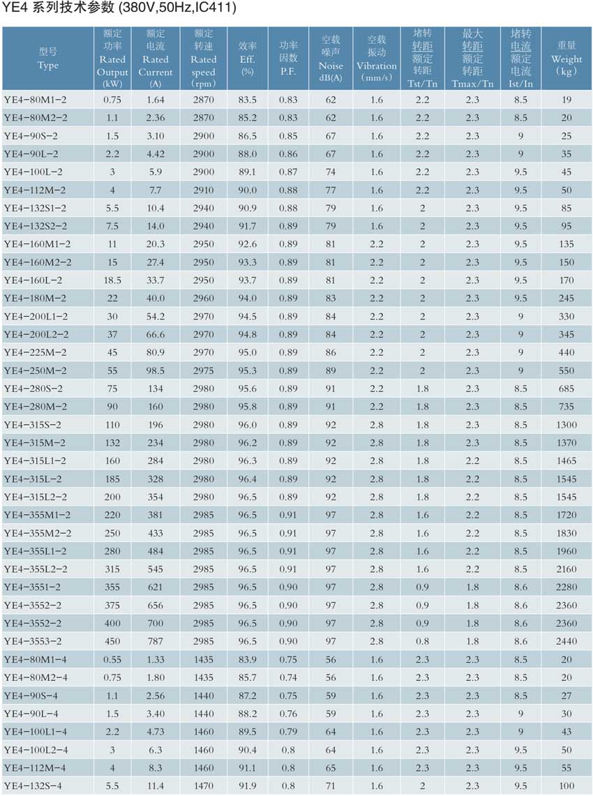 YE4系列三相異步電動機采用新材料、新工藝及優(yōu)化設計而制造的全封閉自扇冷鼠籠式三相異步電動機,是高效節(jié)能型電動機,符合國標GB 18613-2020 《電動機能效限定值及能效等級》二級能效等級。YE4系列電動機具有起動轉(zhuǎn)矩大、噪音低、振動小等特點,同時具有效率高、防護等級高、溫升裕度大,運行安全可靠等優(yōu)點,節(jié)能效果明顯。用于驅(qū)動機床、風機、水泵、壓縮機、攪拌機、包裝機械、建筑機械等各類機械傳動設備,適用于工業(yè)、農(nóng)業(yè)、國防、化工、石油、運輸、食品、醫(yī)藥等各個領域。