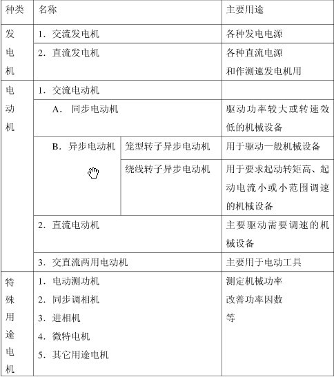 產(chǎn)品知識(shí) 電動(dòng)機(jī)按功用分類及其主要用途表